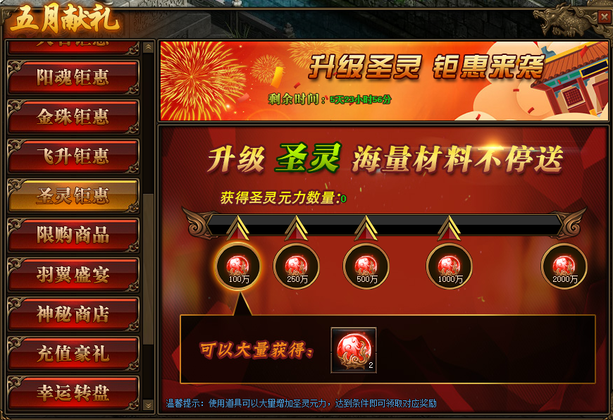 1.活动期间,玩家获得圣灵元力数量,达到条件可领取对应圣灵元力奖励。