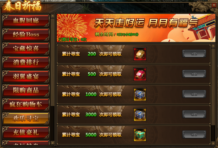 1.活动期间,玩家累积寻宝次数满足要求,可以领取高级天魂石等相应奖励;