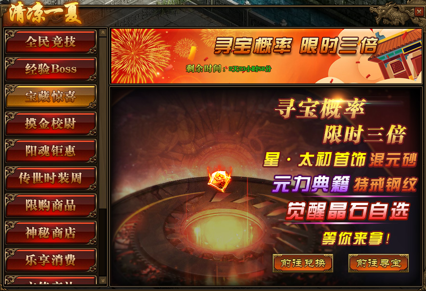 - [06-09]传奇世界6月10日-6月12日清凉一夏活动 宝藏惊喜开启