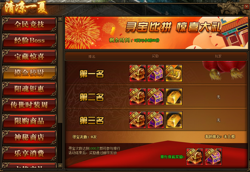 1.活动期间,玩家寻宝次数达到1000次即可参与到摸金校尉排行榜中