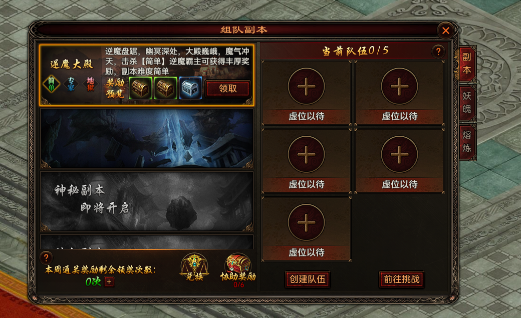 四圣封神是一款传世元神极致攻速的传奇游戏,独特的三元神,酷炫的技能特效,合击神技秒杀boss,四圣封神组队副本可以邀请好友、附近的人、以及行会成员进入队伍,队伍人数和副本难度有关,超过上限不可进入副本,副本会掉落妖魄装备,穿戴一套妖魄装备可以获得副本怪物类似技能,副本获得材料可以用于淬炼装备,获得大量属性,多余的妖魄装备可以在组队-熔炼中熔炼,获得的材料可以用于淬炼妖魄装备,组队副本获得妖魄装备熔炼后获得熔炼积分,用于兑换妖魄装备,更有概率获得到高级材料,用于淬炼妖魄装备,熔炼的装备会流通到兑换中,所有玩家均可兑换。