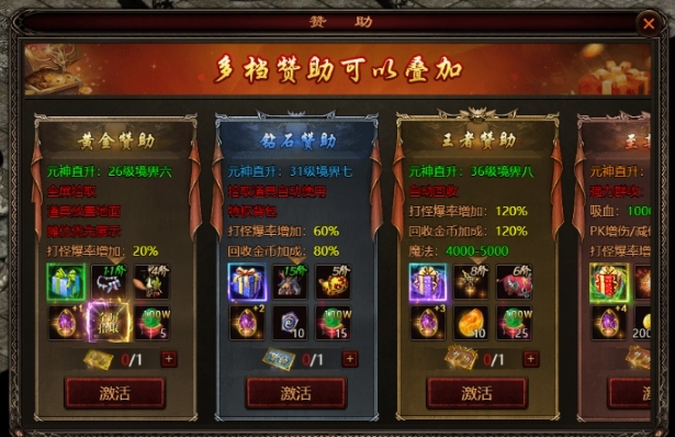 在新区起号后,激活赞助是首要任务。赞助系统提供了自动拾取、自动回收等功能,这些功能对于挂机打宝和资源收集至关重要。建议玩家优先激活四个赞助,尤其是在有折扣的情况下,性价比极高。激活赞助后,你可以更高效地进行游戏,减少手动操作的时间。