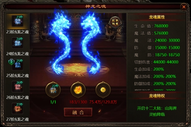 升级神龙之魂不仅能提升百分比属性,还能解锁更高级的大陆,让你在游戏进程中更进一步。