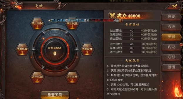 如果在加点过程中犯了错误,不用担心,玩家可以使用1000钻石重置天赋点。重置后,玩家可以重新分配天赋点,调整加点策略。