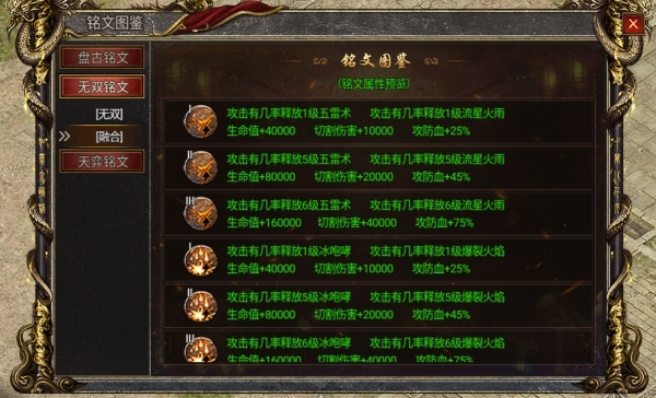 融合铭文:附带两种特殊技能,只能镶嵌在武器上,最多携带三个。