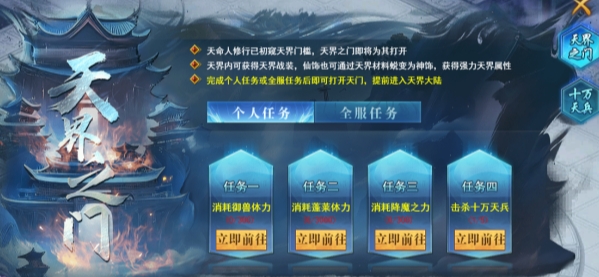 积分机制:击杀跨服天兵天将和跨服上古战场BOSS获得天界积分。