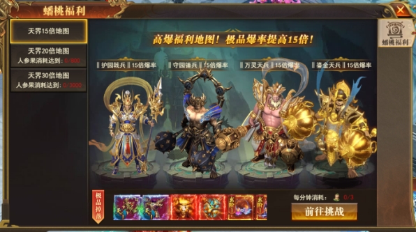 地图倍数:地图分为15倍、20倍、30倍地图,消耗人生果达到一定数量可进入更高倍数地图。