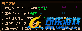 再者玩家之间互相击杀过程中就产生了积分计算,不同阵营的玩家可以相互PK,并且击杀敌方玩家从而增加自己的积分。此外可以增加自己积分的方式还有以下三种:在地图中存活、击杀地图上的怪物或拾取对应掉落的活动积分、帮助本阵营玩家击杀敌方玩家。即: