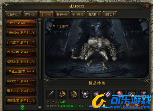 个人boss副本每天可以进入3次,boss被击败后有几率掉落极品装备,小伙伴们可以根据自己的等级和战力来选择boss来击败,获得极品装备。