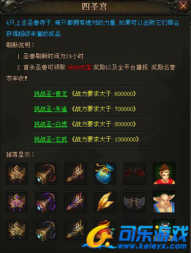 四圣宫需要玩家转生等级到6转才可以进,门槛是比较高的,这里的每个BOSS都有不一样的技能,攻击力超高。