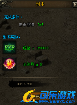 场景中右侧栏,有副本完成条件,只用副本通关才会领取奖励,经验和坐骑丹就可以领取了。领取方式分为两种:免费领取和3倍领取,消耗238元宝就可以获取3倍奖励,坐骑丹还可以通过商城购买的途径获得。