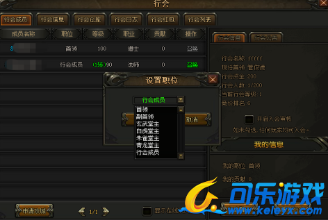 可以查看行会当前成员的相关信息,可以点击其他人的信息查看资料、发起私聊。堂主及以上职位可对其他成员踢出行会,首领可选择其他成员转让行长,对其他成员进行职位设置