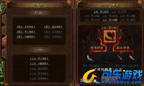 4.上古·神装通过星王·神装作为主要材料,星王装备及上古装备作为辅助材料融合获得
