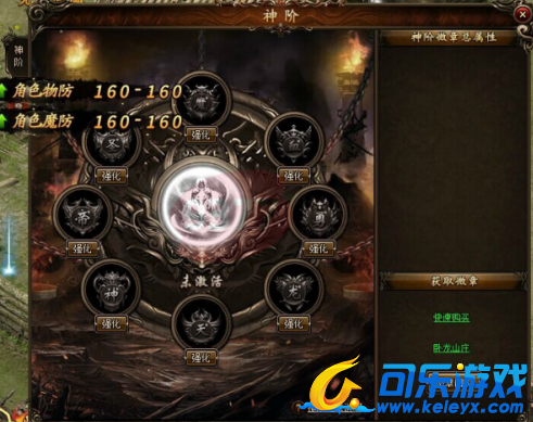 玩家可消耗【神阶强化石】的道具,来强化自身的徽章,来获得更好的徽章属性加成。玩家所强化对象为徽章槽位,更换徽章时,强化获得的属性永久保留的。强化时会根据等级不同,消耗不同数量的【神阶强化石】。玩家穿戴神戒徽章,需要满足对应的神阶等级。当玩家身上穿戴全套徽章,及徽章位强化到一定等级后,会激活徽章套装属性,获得大量的属性加成。玩家相应的徽章位若为穿戴装备,则该徽章位的强化属性和套装属性都不生效。