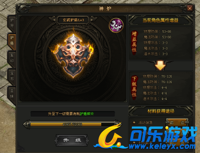 当达到一定的护盾碎片,就可以进行护盾升级了,角色属性就大大增加了,物理防御、魔法防御、物理攻击、魔法攻击和道术攻击都将获得新的属性,大家可以从材料获得途径进入各种副本,从而进行挑战。