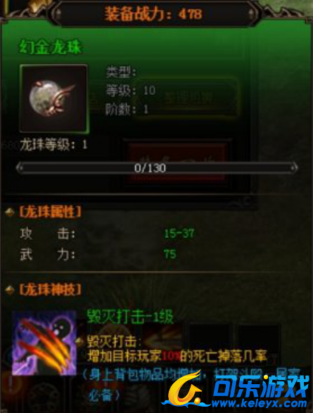 龙珠可以装备到装备格中,提升角色攻击和武力,龙珠自带被动神技“毁灭打击”,龙珠阶数越高,触发几率越大。