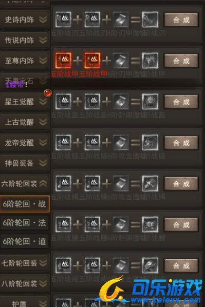 有了5阶的轮回装备之后,我们才能去合成更高级的。目前游戏里可以合成到八阶。两个相同部位可以合成一个高级的同部位装备,同时还需要图纸。