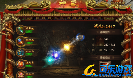 点击游戏主界面上方【神器】按钮打开界面