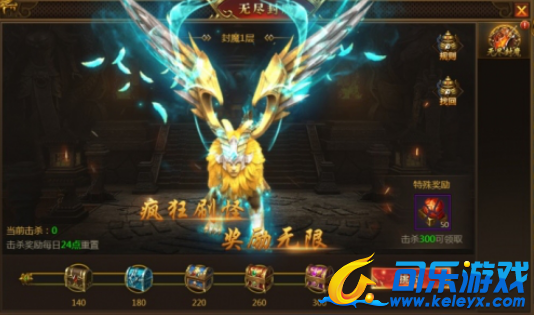 2. 无尽封魔共30层,完成本层指定的刷怪数领取奖励后可以进入下一层