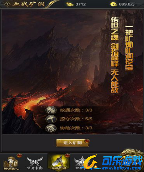 2、玩家每天拥有三次采矿机会,进入矿洞可雇佣矿工采矿,采矿期间玩家可离开场景,30分钟后回到矿洞领取收益,消耗元宝可快速完成