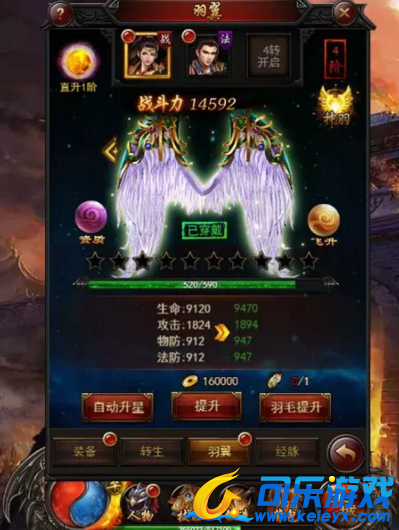 3、羽翼飞升:每次提升羽翼飞升的等级,均能提升羽翼的属性。每升10级,就会按百分比提升羽翼的基础属性