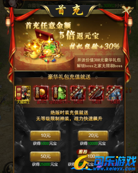 首次充值奖励:5倍元宝返利,更有绝版时装赠送