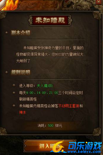 进入条件:1)天人境1阶,2)每次进入都要小号500绑定元宝