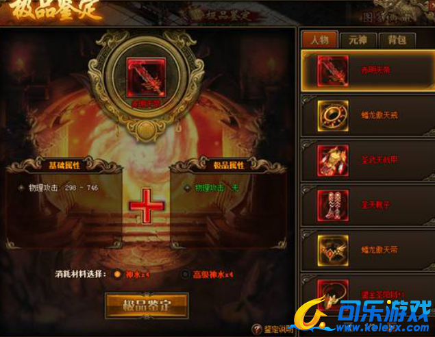打开这个npc,可以看到一个装备鉴定的界面,通过坚定可以大幅度提高装备极品属性,而其中所需的材料就是神水。神水产自神秘的地图——未知暗殿,估计有很多玩家不知道怎么才能找得到这个地图的入口。