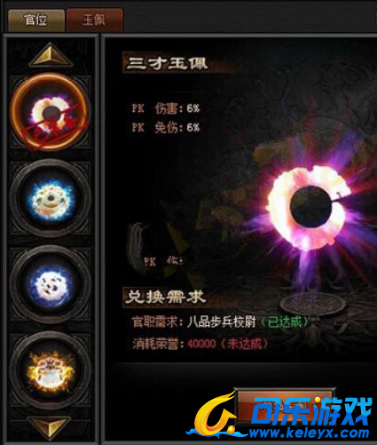 玉佩等级越高兑换所需要的荣誉也就是越多,荣誉可以通过定时活动中PK其他玩家获得,另外购买商城中的荣誉宝箱也可以获得荣誉。
