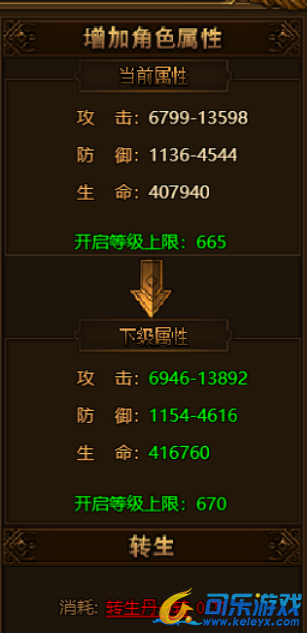 转生系统是游戏里一个非常重要的系统,首先转生的等级会影响人物的等级上限,当人物等级上限满后,需要继续提升转生等级,人物才能继续升级。