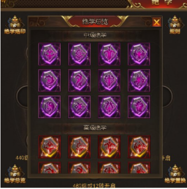 使用三本同等级的绝学可以置换新绝学,在置换使有一定几率获得高级绝学,修炼中级绝学不会替换原有的高级绝学,如果随机到高级绝学的槽位,会消耗掉中级绝学道具并且修炼失败,修炼高级绝学时,如果有已修炼的同属性的中级绝学,那将会直接替换成高级绝学。