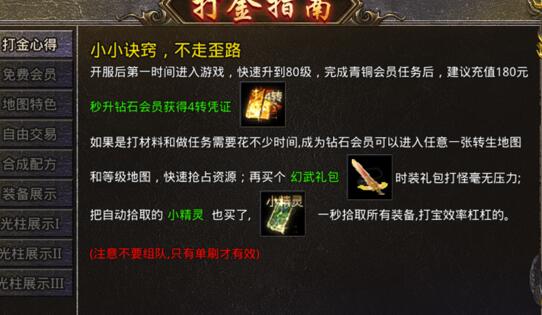 1.开服后第一时间进入游戏,快速升到80级,完成青铜任务后,建议充值180元。