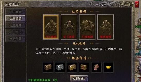 2、山庄首领共有4个首领,首领被击杀后10分钟后刷新
