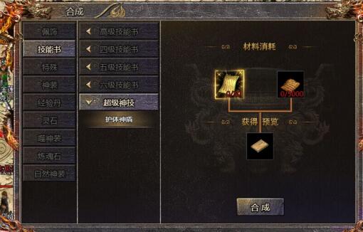 此外,每个职业还有一项超级神技,这些神技的技能书,也可以利用技能书页和神技书页合成,不过神技书页获得较难,要通过运营活动获取的。