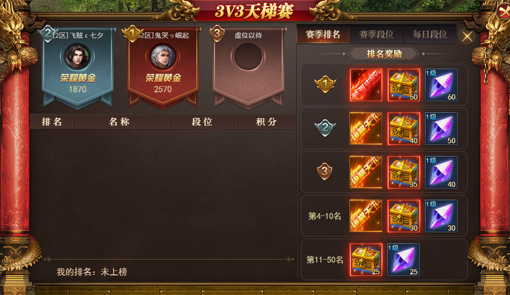 1、跨服3V3是赛季制玩法,每周一个赛季;