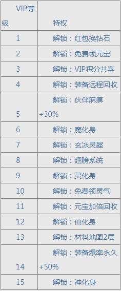 VIP特权解锁一览表: