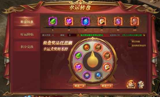 (1)玩家转动幸运转盘时,可额外获得幸运积分;