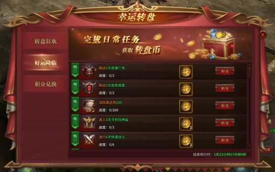 (1)活动期间,完成日常任务,即可获得转动转盘所需的幸运币