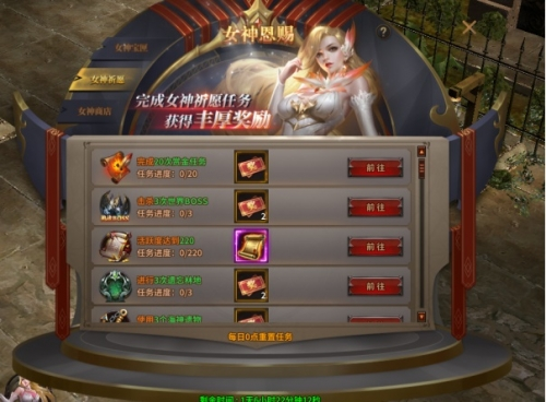 (1)活动期间,每天可完成女神祈愿任务;