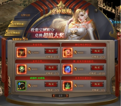 (2)宝匣积分可在女神商店中兑换商品;