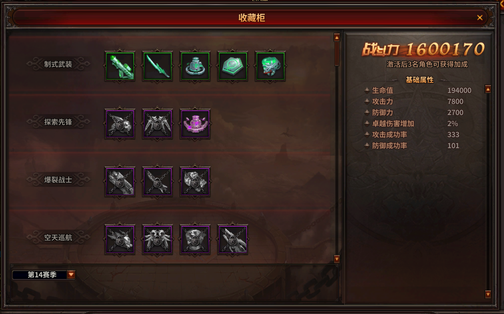 (3)异军战装有独特的充能方式导致其在一定时间后会失效,每个赛季重置后将无法再激活、提升上一赛季的战装,但上一赛季已收集的战装将保留在收藏柜中,属性也将一并保留