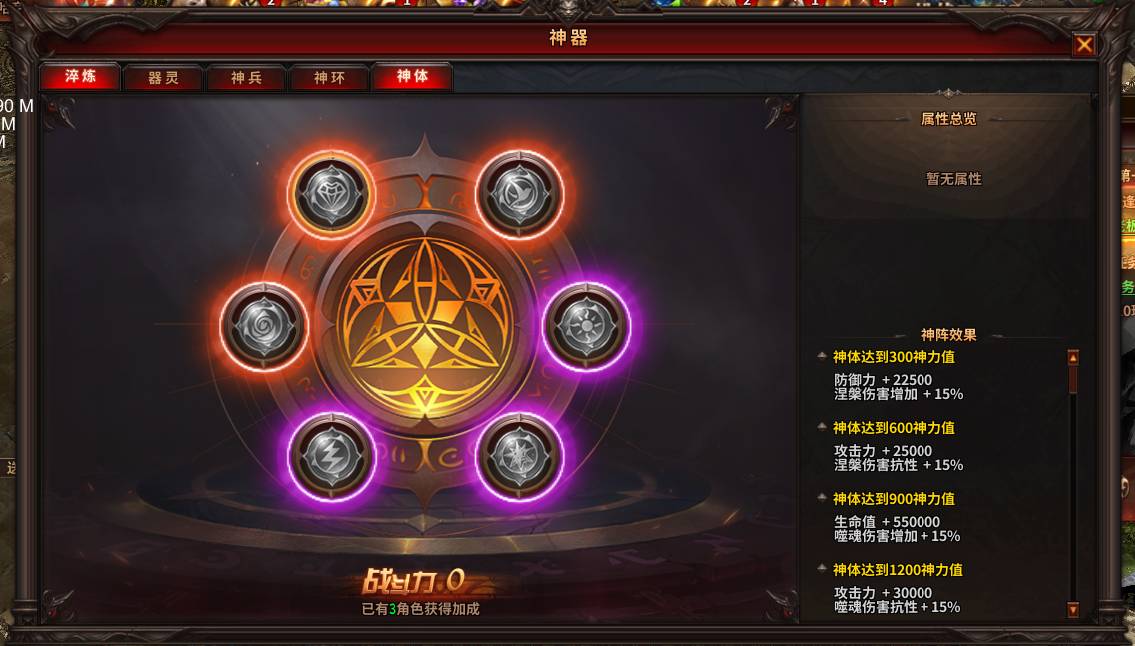 (2)收集神体可激活、升级神体,激活多个神体提升神力值,可获得大量属性加成