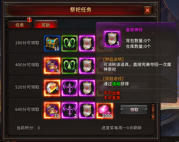 (3)魔神祭祀任务奖励调整,新增复原神符奖励