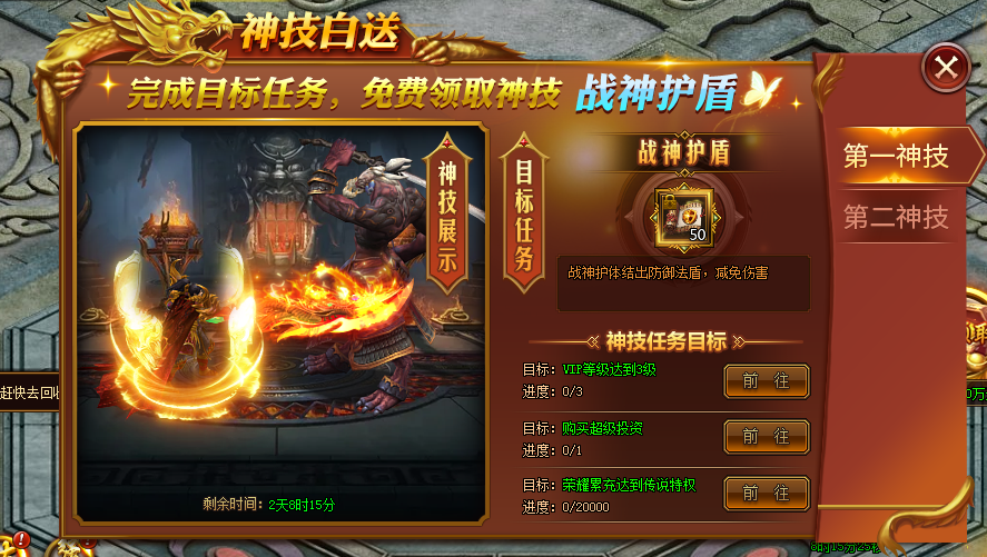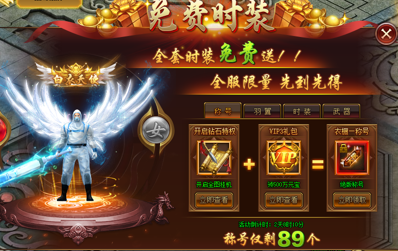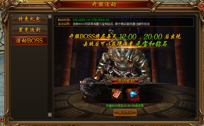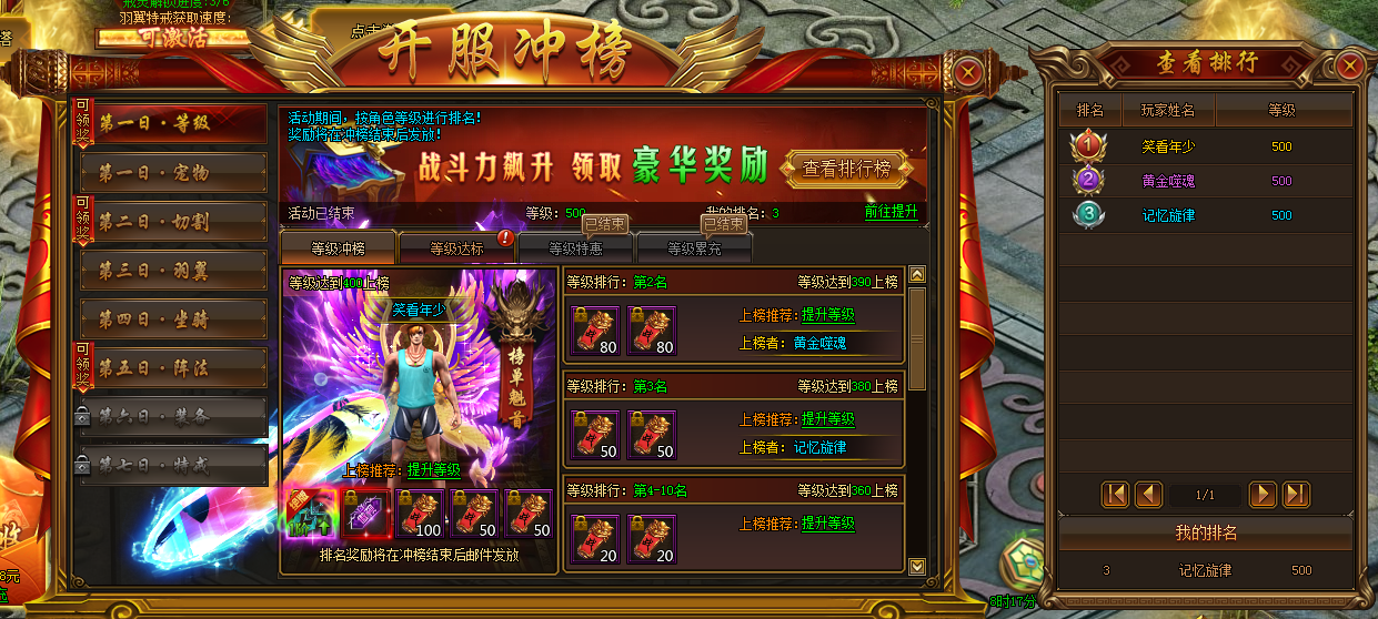 根据开服冲榜的不同开启不同的限时任务活动、完成任务即可领取奖励,助力冲榜