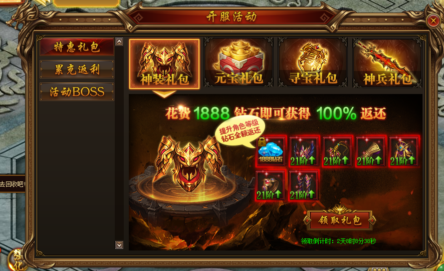 根据开服冲榜的不同开启不同的特惠购买活动、助力冲榜