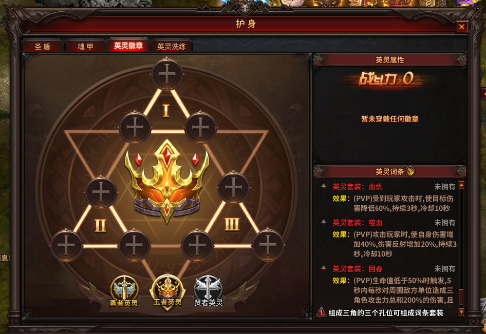 (1)三角色达到1000级后,可开启英灵徽章-王者英灵,镶嵌新的英灵徽章