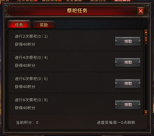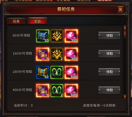 (1)魔神祭祀新增每周任务及每周奖励,每周一0点刷新。完成任务可获得大量奖励