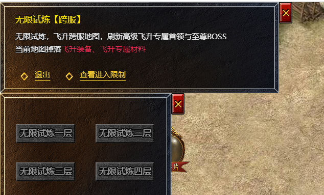 3、无限试炼含有特殊的福利BOSS,击败后有概率获得稀有飞升材料