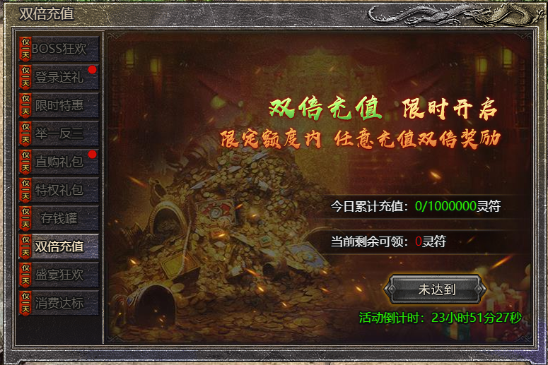 1.活动期间,限定额度内,任意充值即可领取双倍灵符奖励