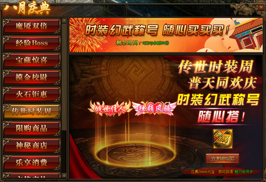 1.活动期间,玩家可在神秘商店中购买商品,商品可用金币,绑元,元宝进行购买;